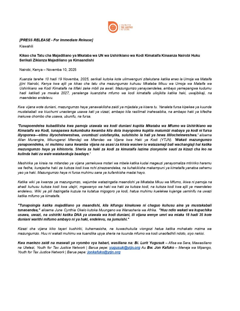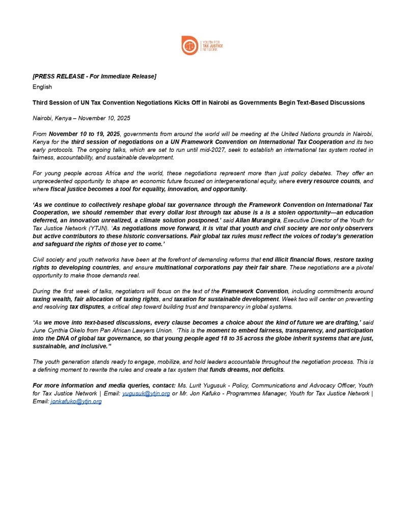 YTJN intends to once again collaborate with KYMCA to hold public hearings for the Bill with the citizens and the Assembly and then have the MCAs debate the Bill in the Assembly. This Bill once passed into law is expected to address youth unemployment, insufficient domestic resource mobilization, food insecurity, double taxation of youth operating in small and medium enterprises, teenage pregnancies, skillset mismatch amongst the youth, limited youth participation in formulation of policies and laws at County level among others.