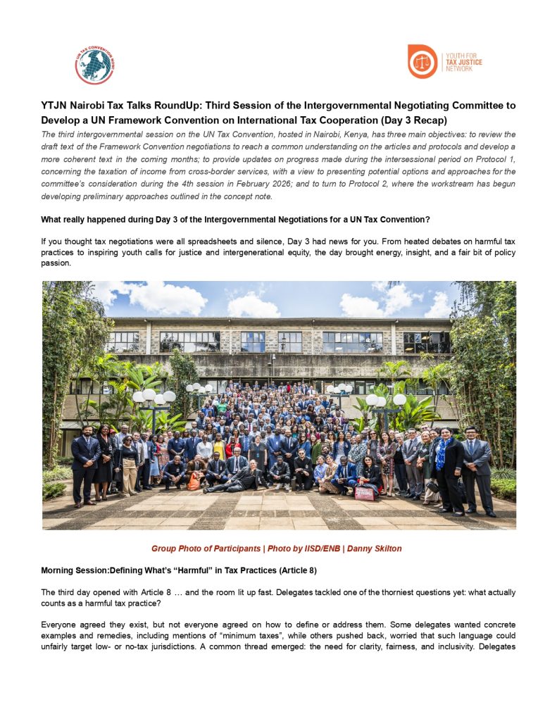 A decade later, that call for action still resonates, but it now meets a generation ready to act. The Youth for Tax Justice Network (YTJN) represents this renewed energy. It demonstrates the work young people are doing to advance the Mbeki Report’s vision through advocacy, policy dialogue, and youth-led campaigns that push for greater transparency, fair taxation, and accountability across Africa and beyond.